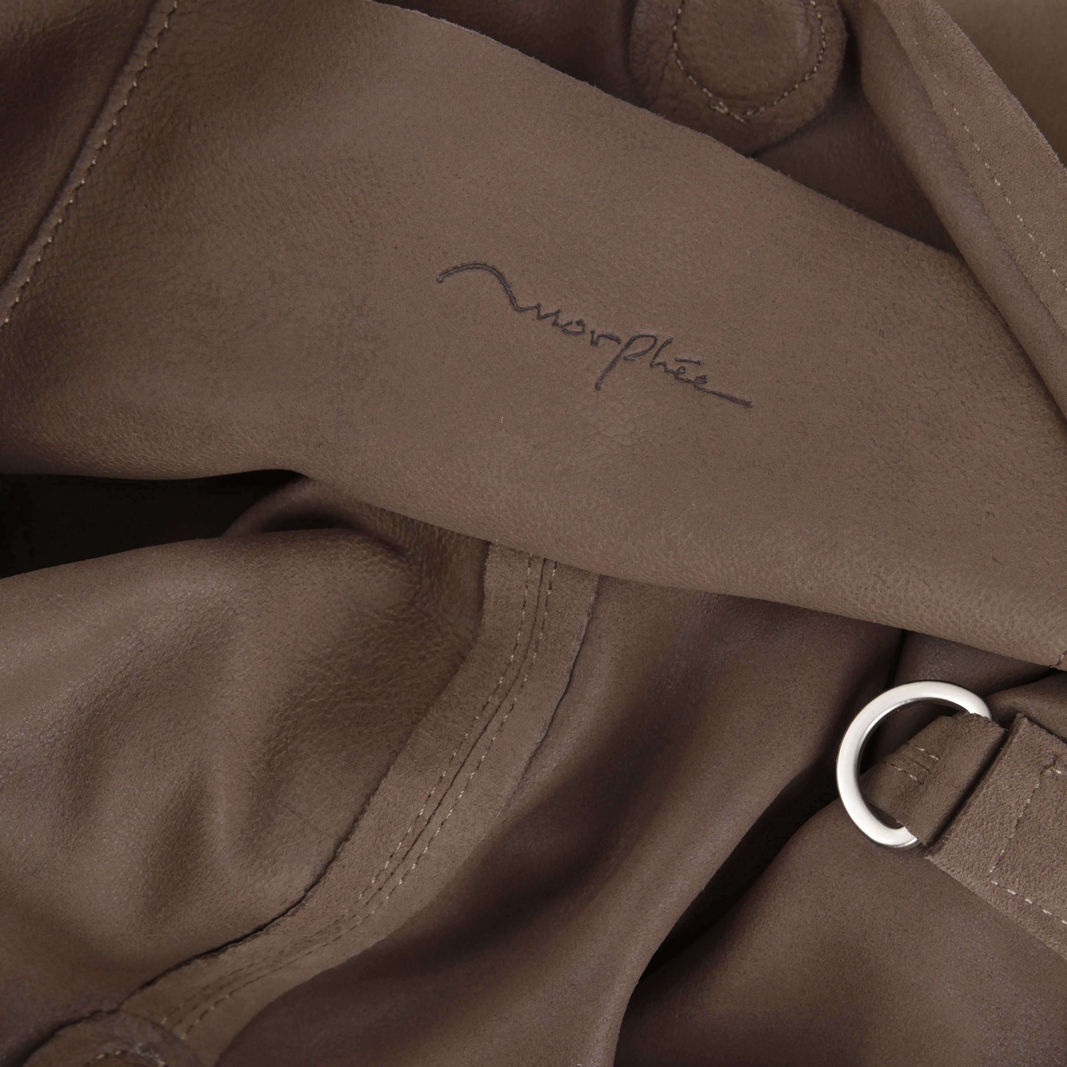 微量のオイルを入れることで通常のスエードレザーよりも撥水効果が期待でき、より高級な仕上がりになる加工を施しております。使いこむほどに柔らかくなる独自の経年変化もぜひお楽しみください。