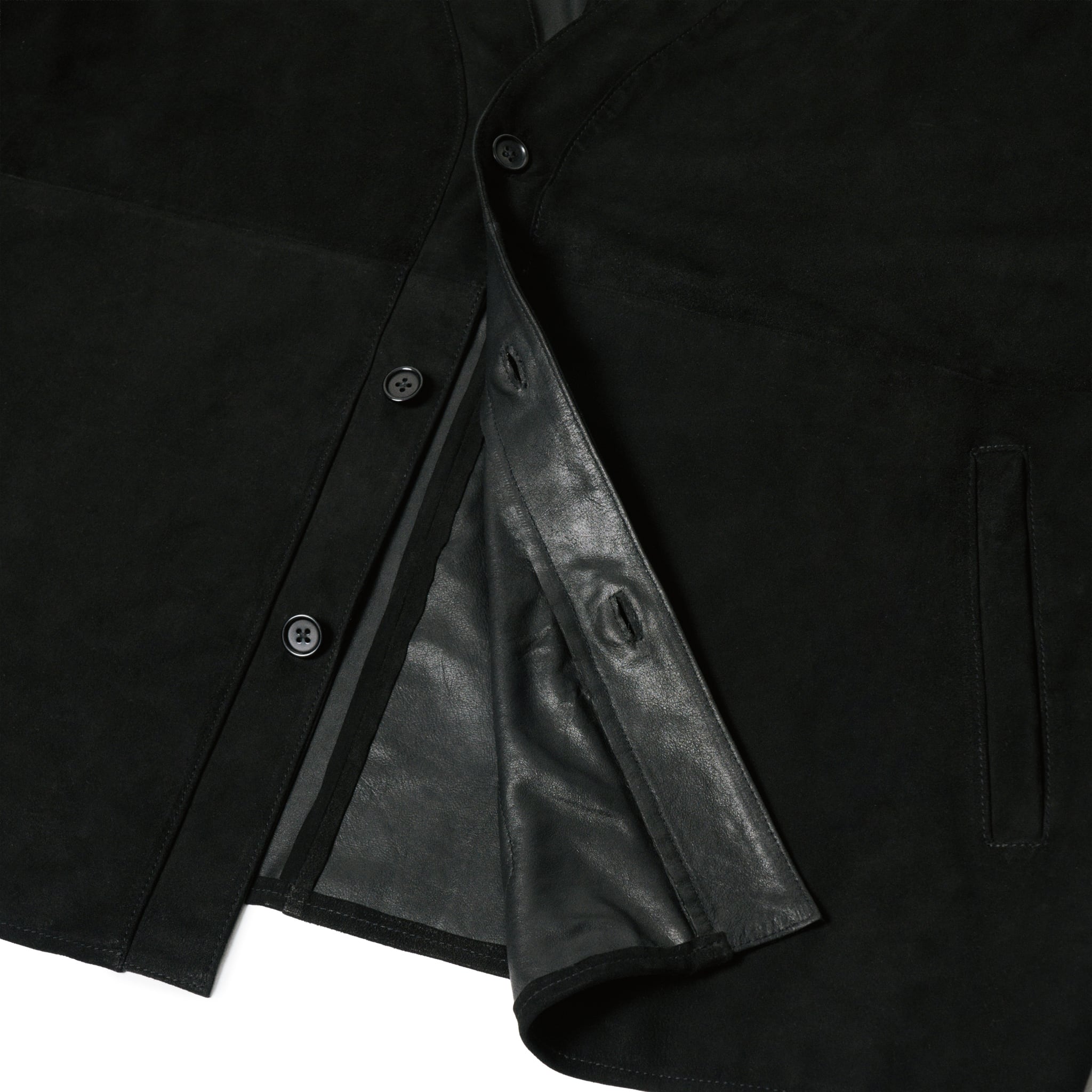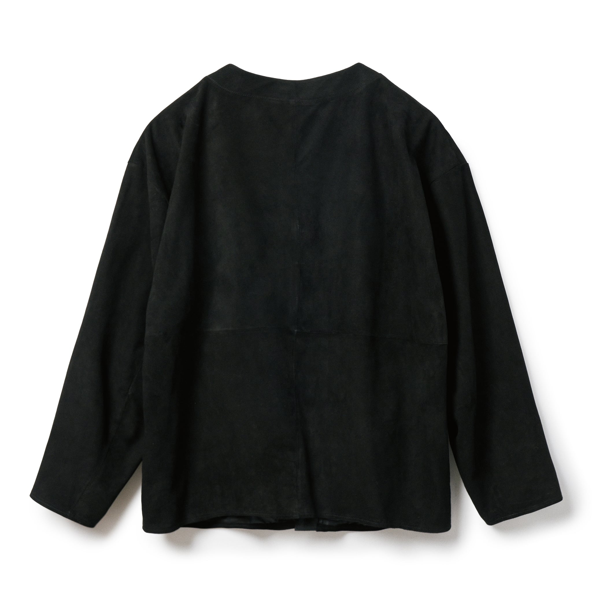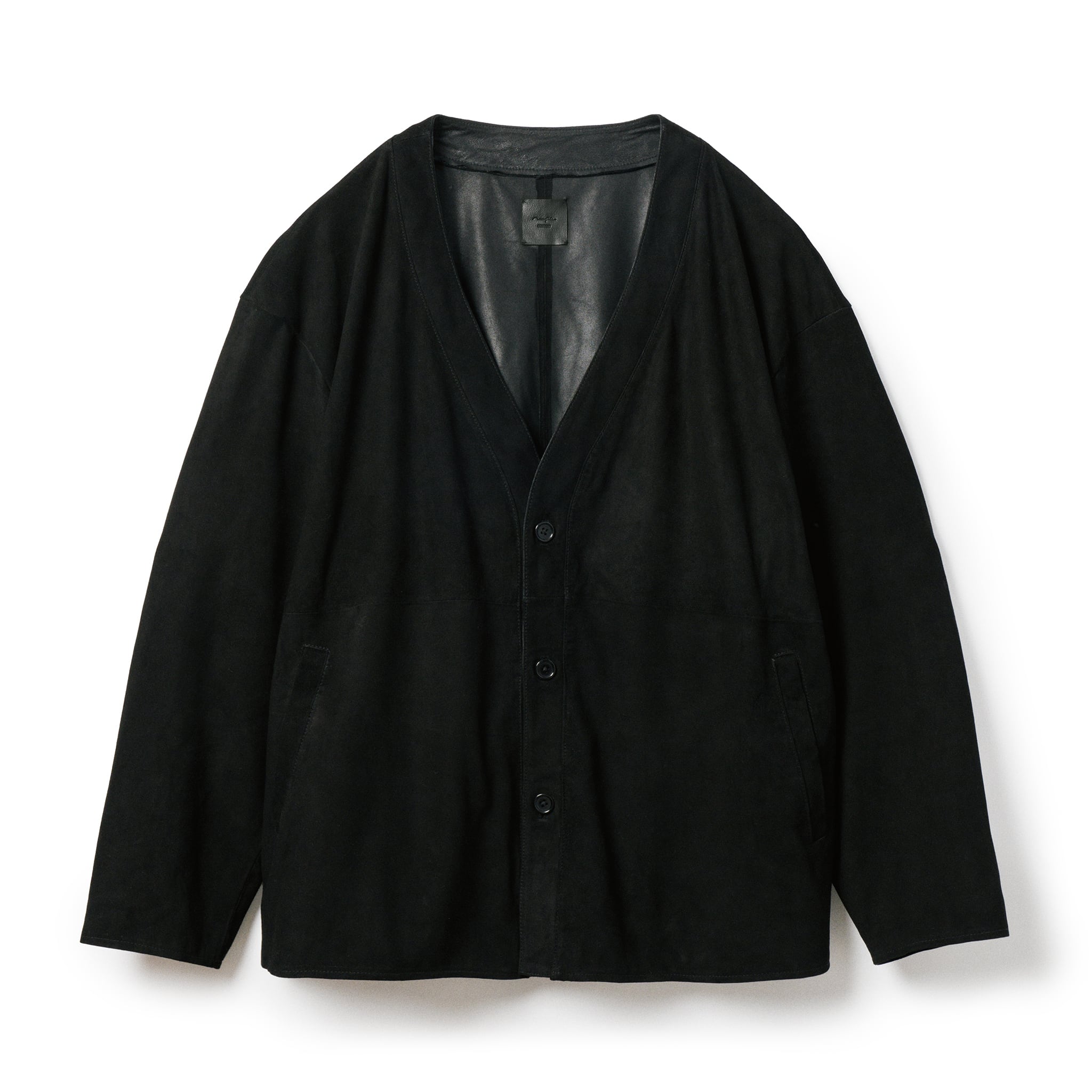 ヴィンテージのレザーカーディガンをベースにしたジャケットは、今の時代に即したモダンなバランスへと再構築しました。身頃とアームホールにゆとりを持たせたボックスシルエットは、レザーとは思えない軽やかな着心地が特徴です。アウターとしてシャツやニットに合わせて着用するのもおすすめです。