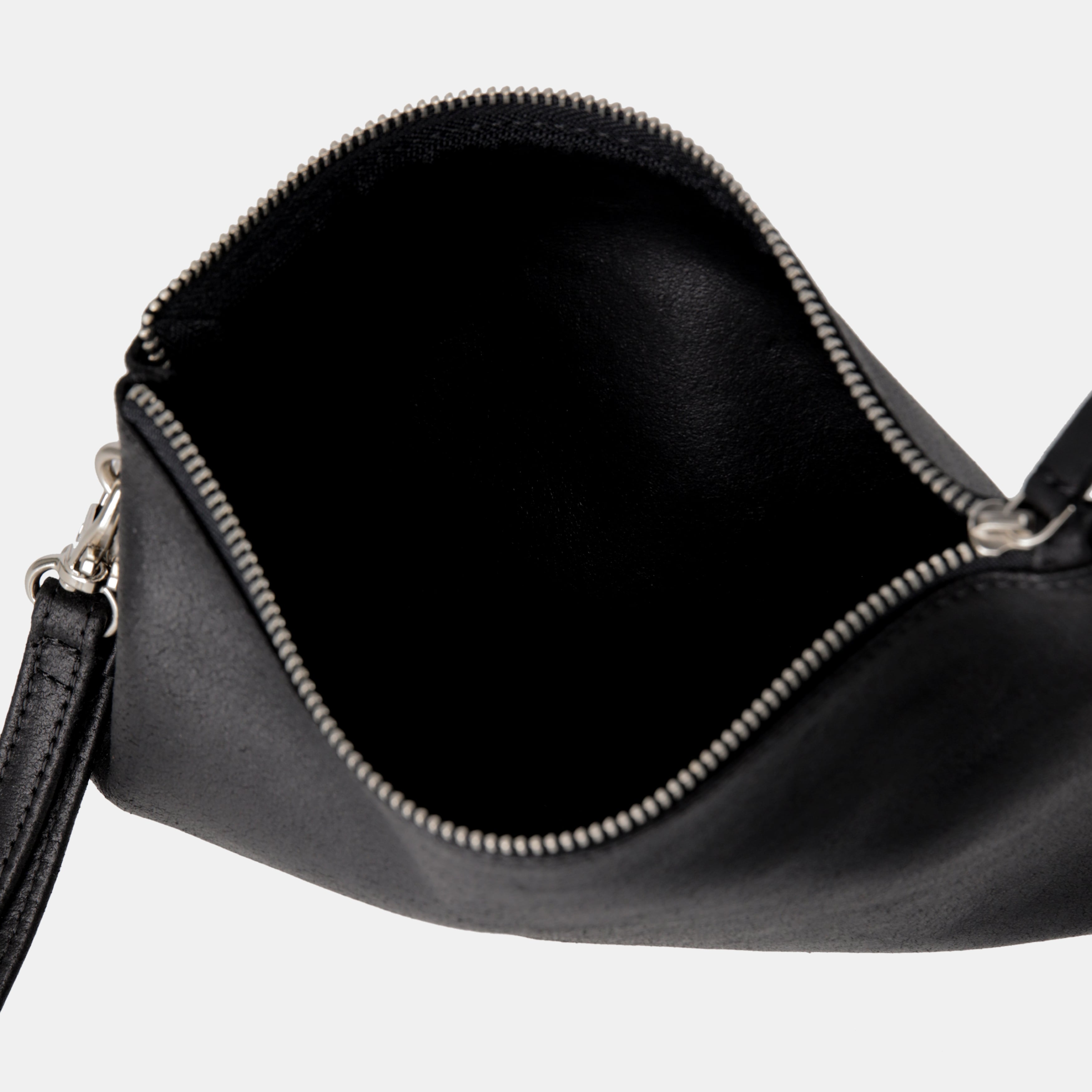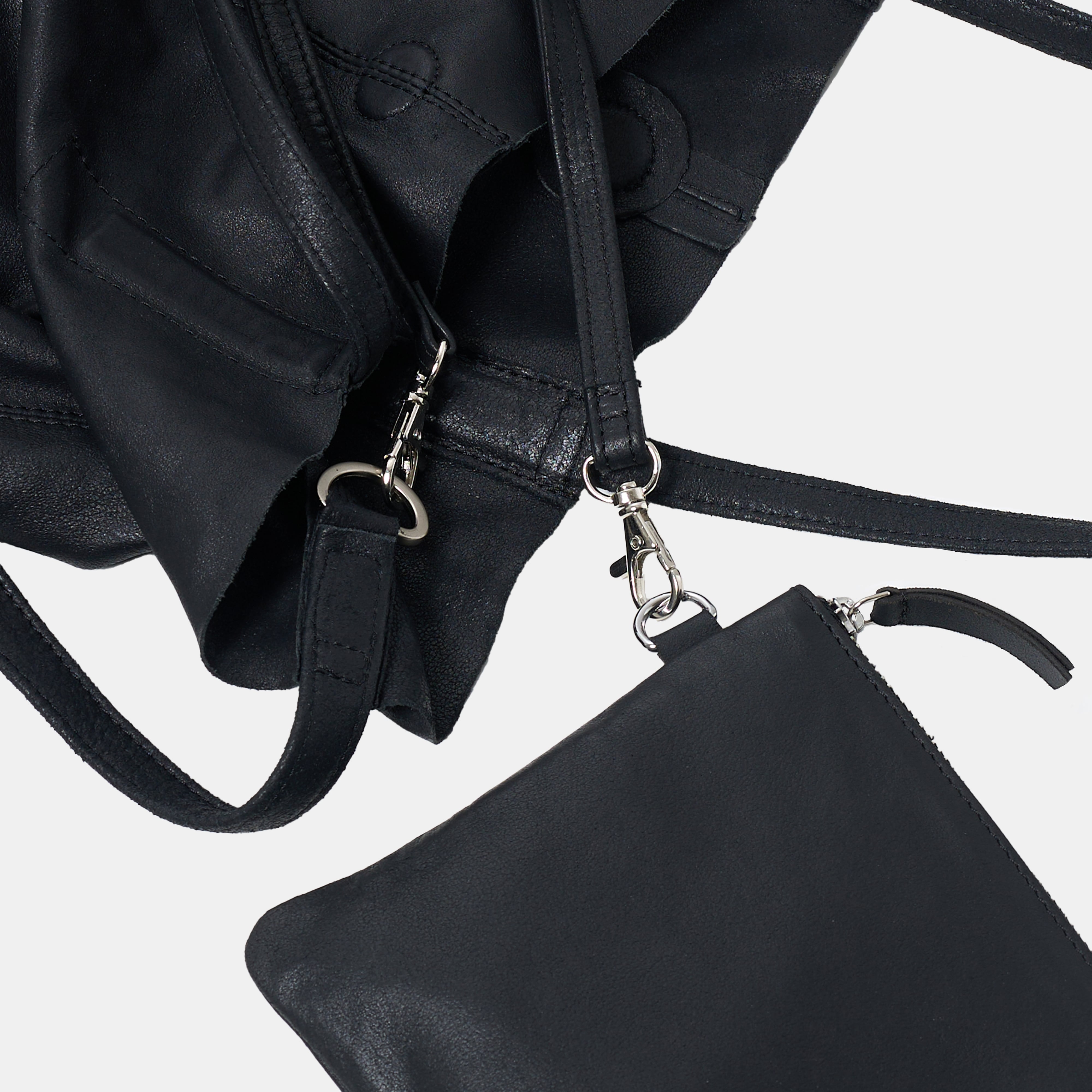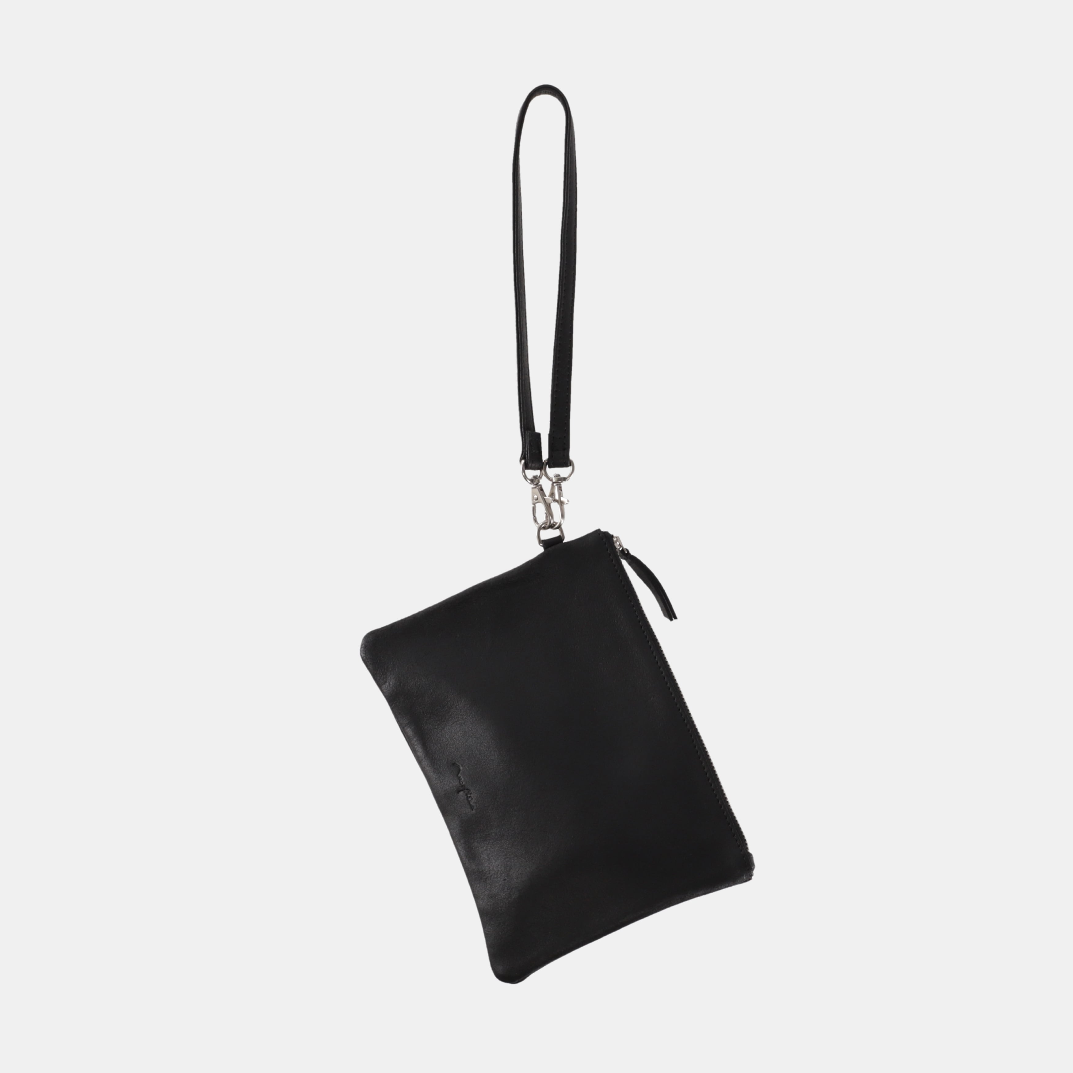 ブランド定番レザーバッグの内側金具のDカンに着脱できるポーチです。バッグに付けてセット使用はもちろん、レザーコードをハンドストラップとしてミニバッグとしても使用可能。携帯や小さめの財布を入れることも可能です。